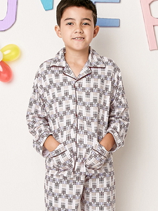 方格魔力。長袖套裝童睡衣