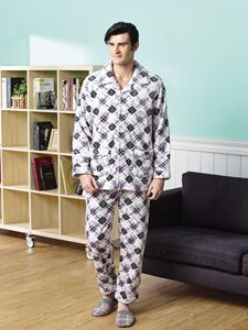 風雅格紋。珊瑚絨男睡衣