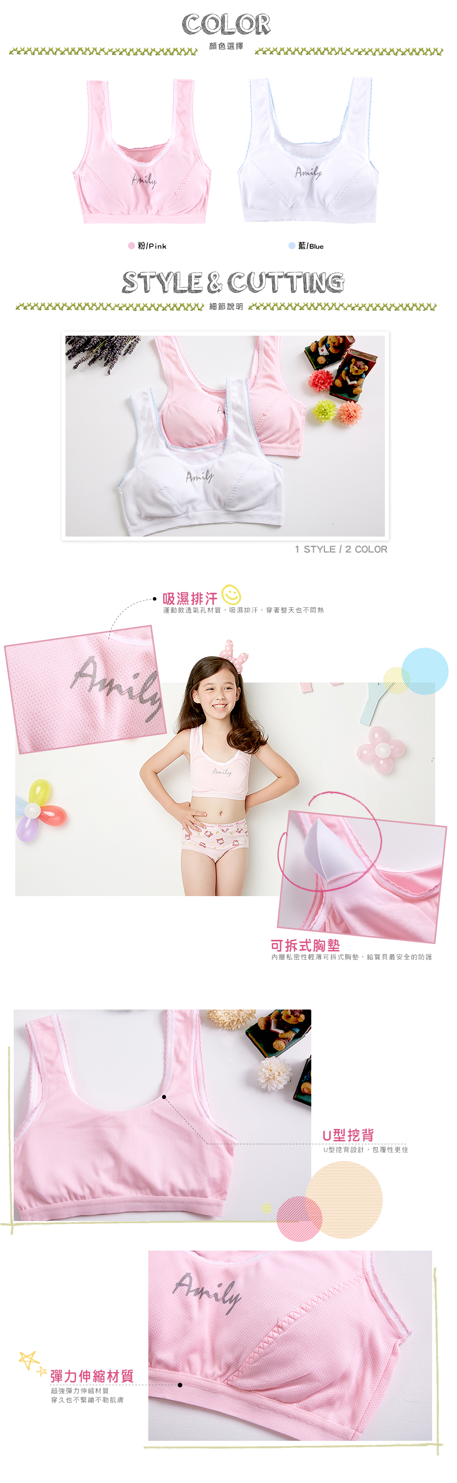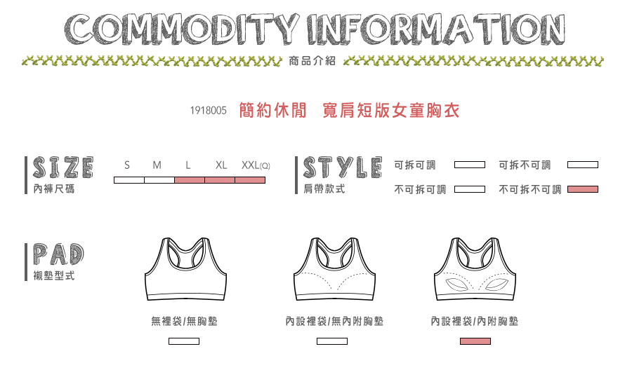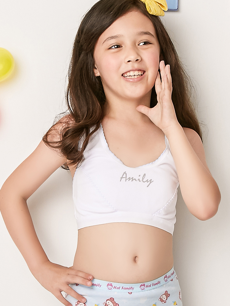 簡約休閒。寬肩短版女童胸衣