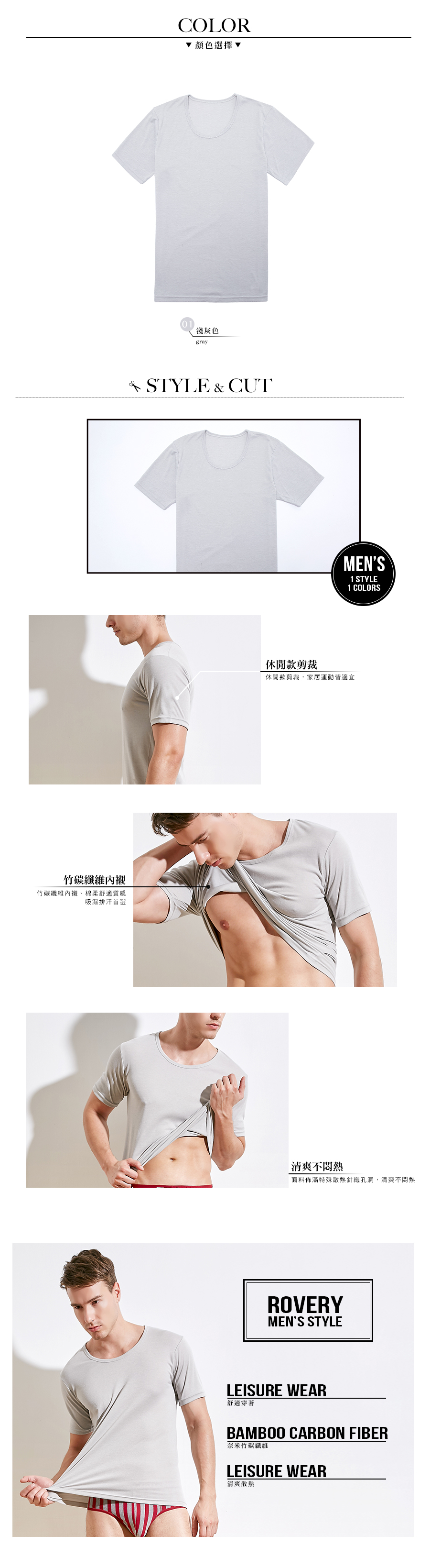 竹炭機能。男性內著短袖內衣