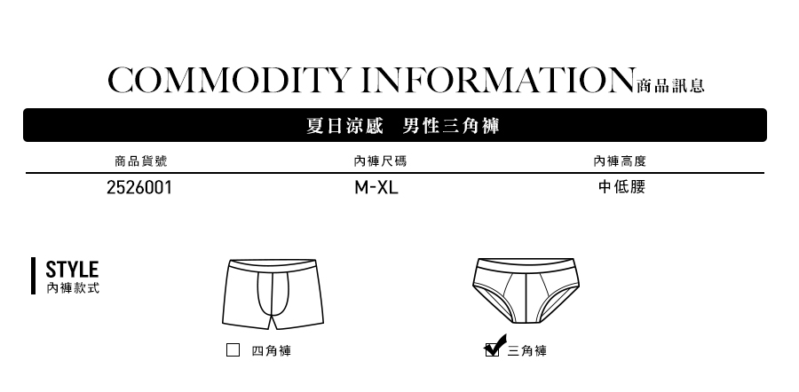 夏日涼感。男性三角褲